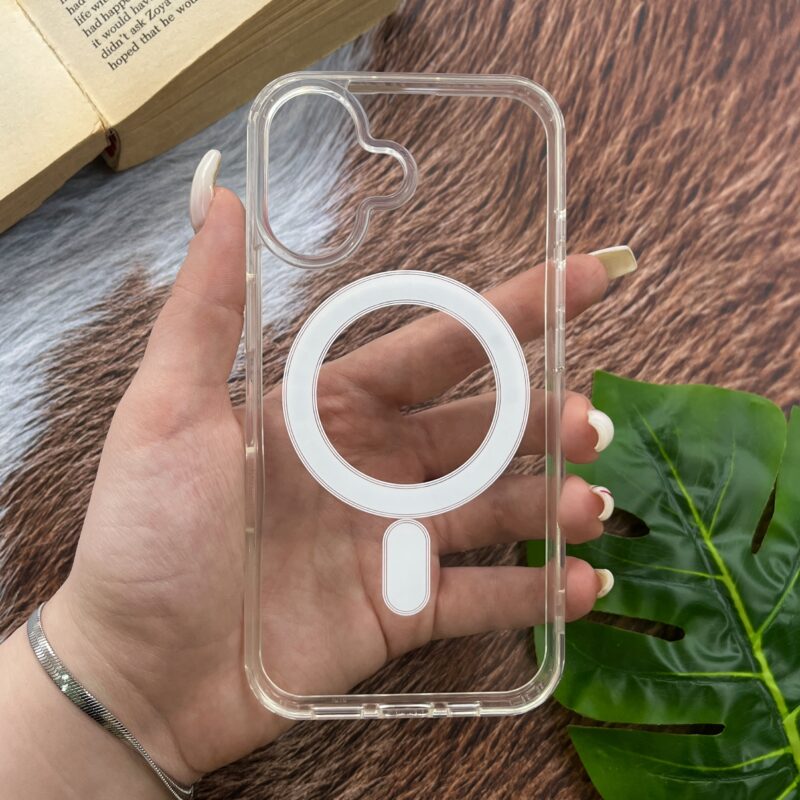 برای آیفون 16، کاورهای شفاف با قابلیت مگسیف و طراحی مقاوم در برابر خط و خش و زردشدگی در دسترس است. این کاورها معمولاً از پلیکربنات شفاف و مواد انعطافپذیر ساخته شدهاند که علاوه بر محافظت از گوشی، ظاهری شفاف دارند تا رنگ اصلی آیفون 16 شما را به نمایش بگذارند. برخی از این کاورها، مانند کاور آیفون 16 مگسیف شفاف اصلی و برندهایی چون اسپایگن، دارای ساختار مغناطیسی برای شارژ سریعتر با مگسیف و شارژرهای بیسیم سازگار هستند. قیمت این کاورها بسته به برند و امکانات متفاوت است
